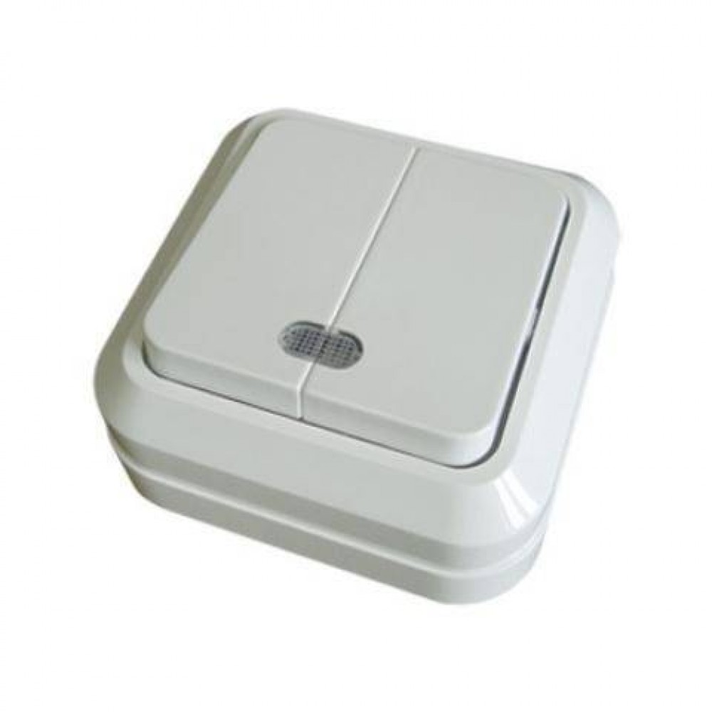 Выключатель 2кл О/У Ладога белый с инд.TDM SQ1801-0007