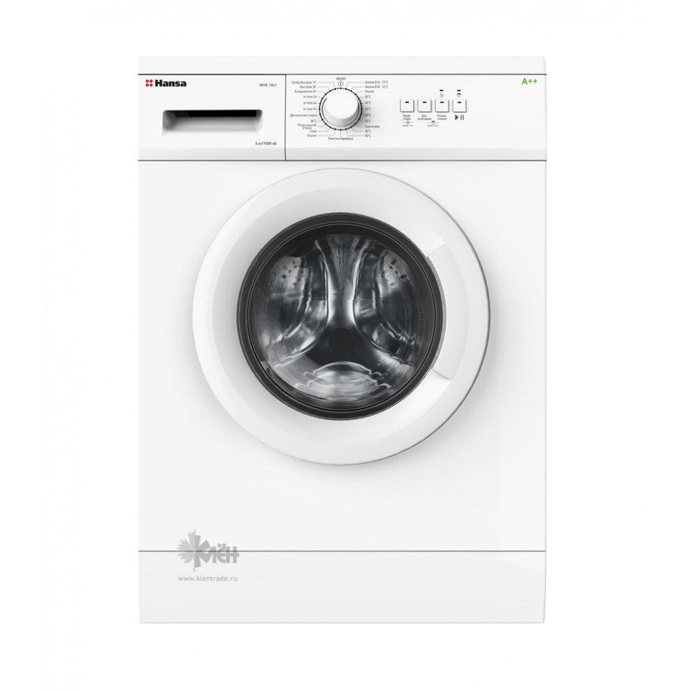 Стиральная машина HANSA WHE 1041 обладает фронтальной загрузкой и способна вместить до 6 кг белья за один цикл работы, класс эффективности стирки данной модели A.