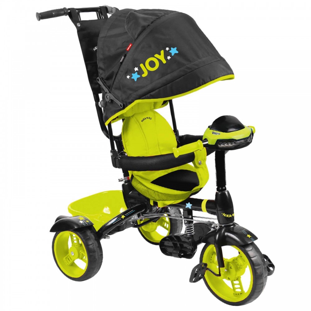 Велосипед 3-х кол. НИКА ВД4М/4 крыша-капюшон, родит.вело-ручка, пласт.кол., чёрно-лимонный