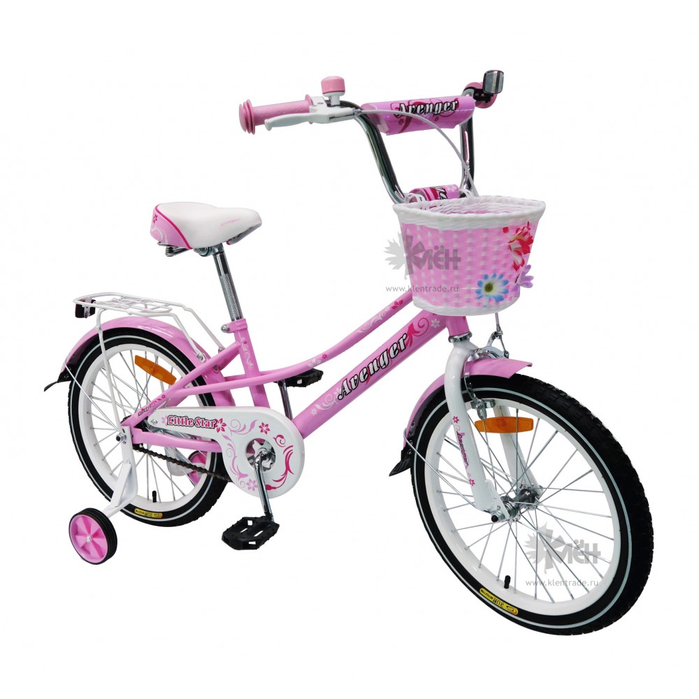 Велосипед 18"" AVENGER Little Star с корзиной розовый/белый