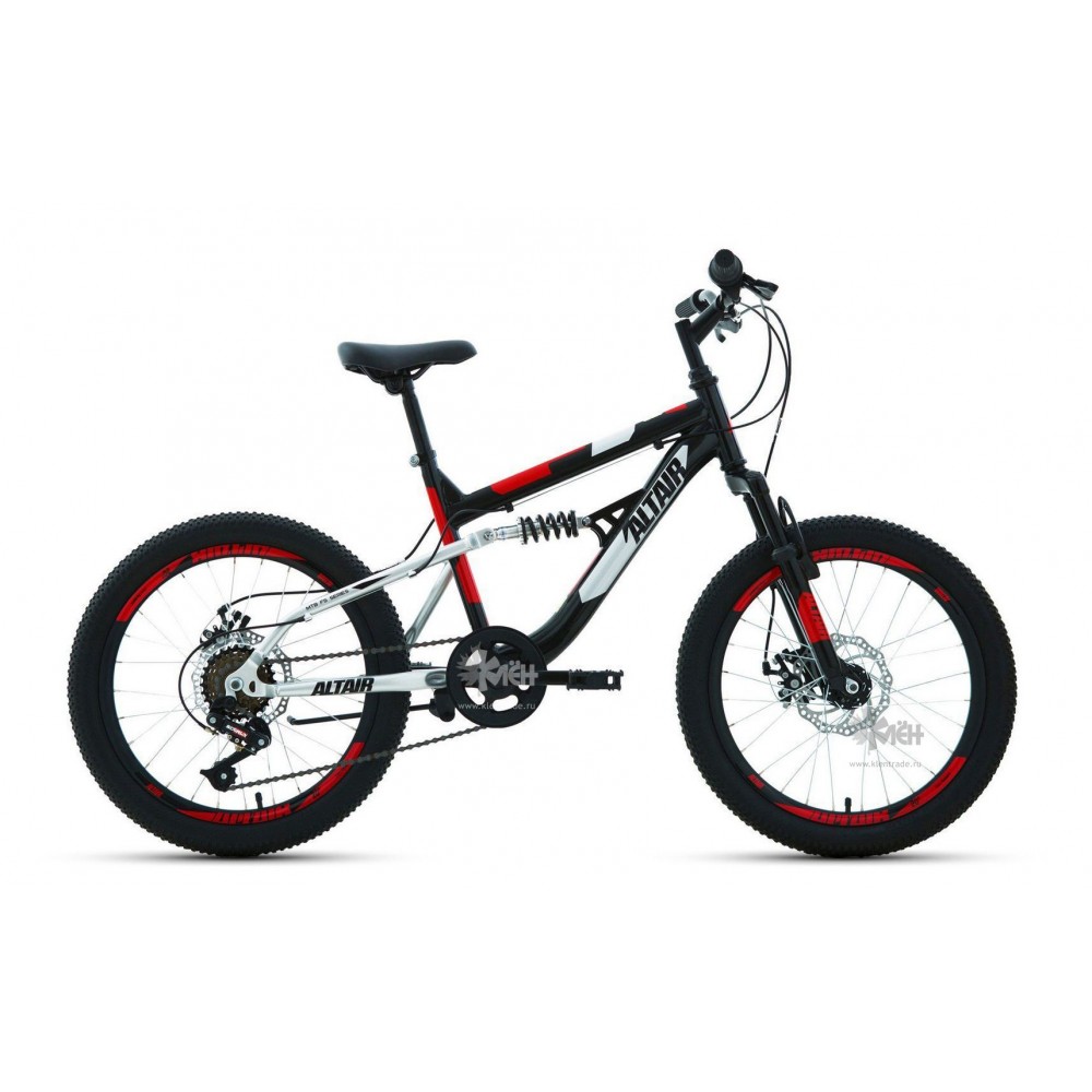 Велосипед 20"" ALTAIR MTB FS disc двухподвес, рост 14"", 6ск., чёрный/красный