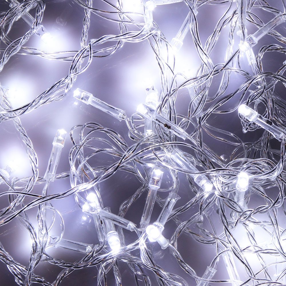 - 100 ярких LED лапочек с холодным белым свечением;