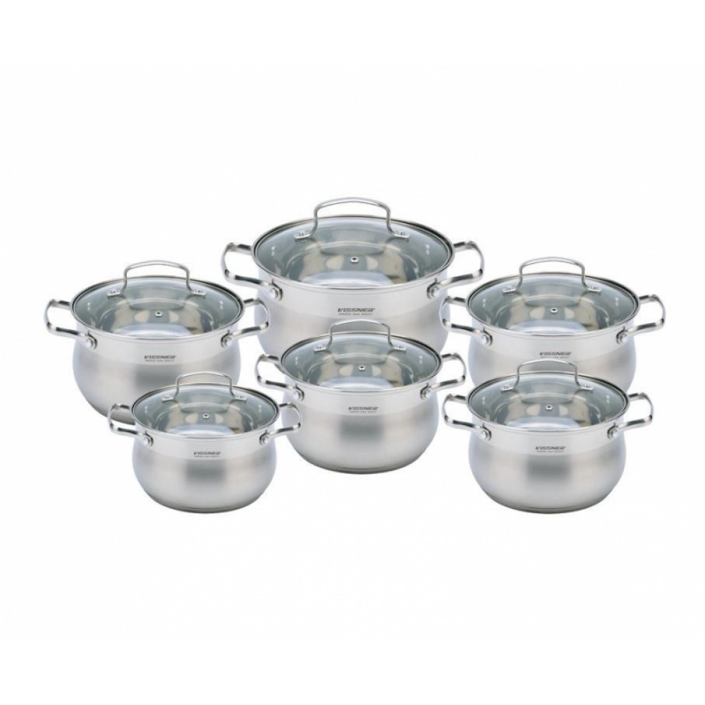 Набор посуды 12пр. VISSNER VS-50627 Gloria (2,1л+2,9л*2+3,9л*2) подходит для индукции