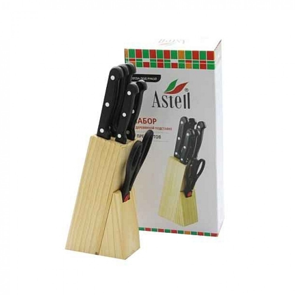 Ножи 7пр. AST-004-HH-001 дерев.ручки + подставка + ножницы