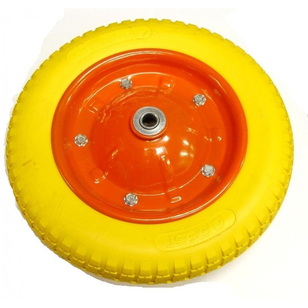 Колесо д/тележки полиуретановое 300-8 (16мм) (красно-желтое)