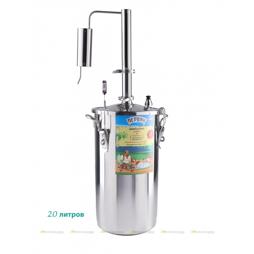 20л, термометр, клапан избыт. давления, разборный сухопарник, слив сивушных масел, охладитель, сетка-контейнер для ароматизации, съемная крышка