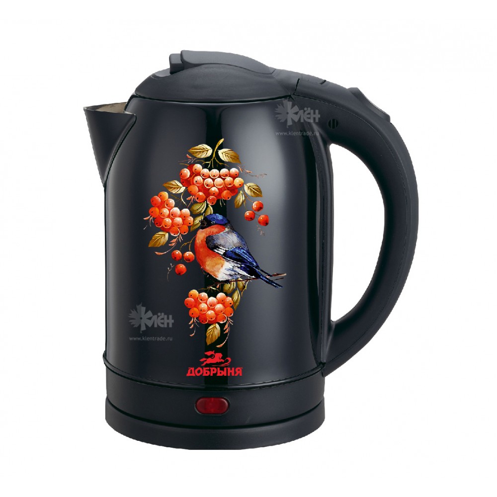 Оригнальное решение оформления дизайна чайника ДОБРЫНЯ DO-1248 "Снегирь", принесет только положительные эмоции от пользования прибором. Чайник станет прекрасным подарком и поводом собрать всех за столом. Увеличенная вместительность электрического прибора на 2 литра позволит угостить целую компанию горячими напитками.