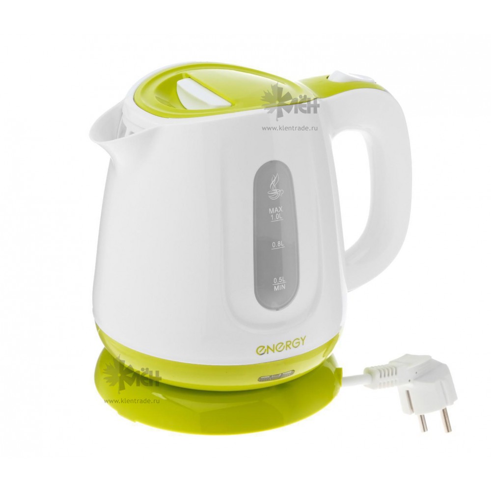 Электрический чайник Energy E-234 выполнен в ярком белоснежно-зеленом корпусе из термостойкого пластика. Прибор выполнен в стильном оригинальном дизайне, имеет компактный размер. Эргономичность и безупречная форма будет уместно смотреться в любом интерьере. Чайник Energy E-234 безопасен в использовании, он автоматически отключится при закипании или при минимальном количестве воды.