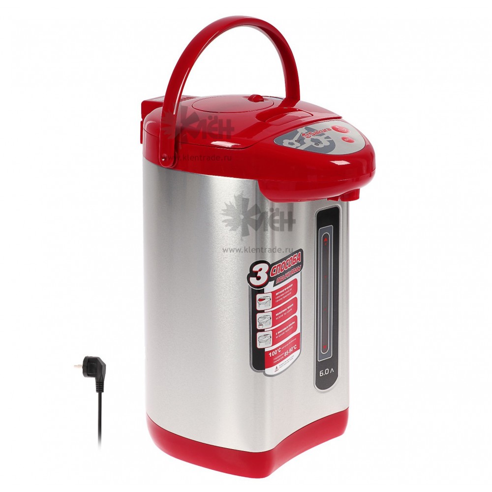 Термопот SAKURA SA-336RS это кухонный прибор успешно сочетающий в себе функции чайника, термоса и куллера. Как и чайник, он нагревает воду, как термос, может поддерживать её температуру на заданном пользователем уровне. Конструкция термоса включает в себя полностью стальной корпус. Нержавеющая сталь корпуса не подвержена коррозии и сохраняет природный вкус чистой воды.