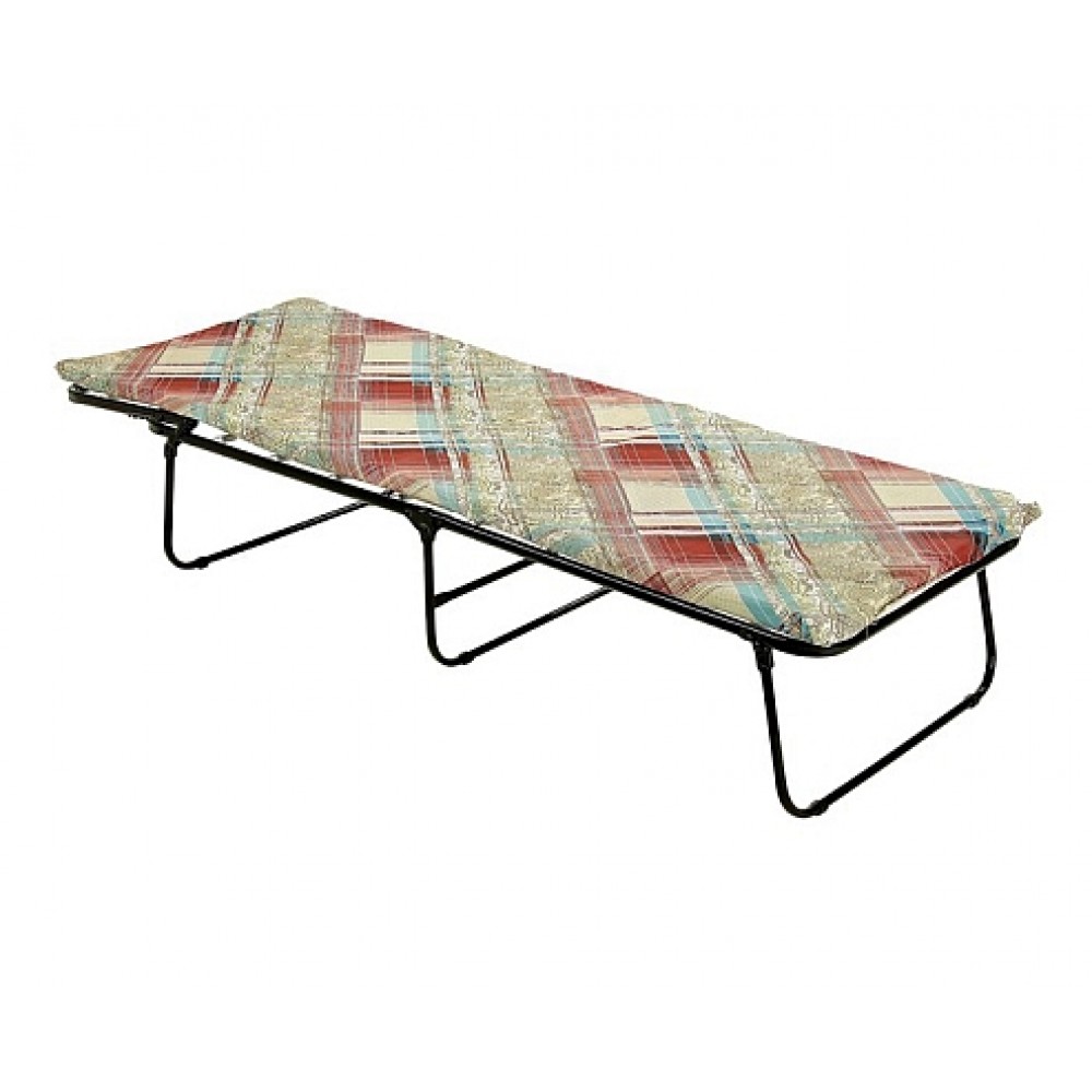 Кровать раскладная с матрасом. Габаритные размеры изделия (ДхШхВ): 1970х733х390 мм. Максимальная нагрузка: 120кг. Материал каркаса: труба стальная 25х1,0. Материал опоры: труба стальная 19х1,0. Полимерное покрытие. Тканевый настил. Матрас: несъемный, наполнитель матраса - поролон толщиной 40мм, фиксация к каркасу осуществляется с помощью пружин. Регулирование подголовника: 4 положения. Индивидуальная упаковка: пленка. Размер упаковки: 730х220х860мм. Вес нетто: 7,8кг